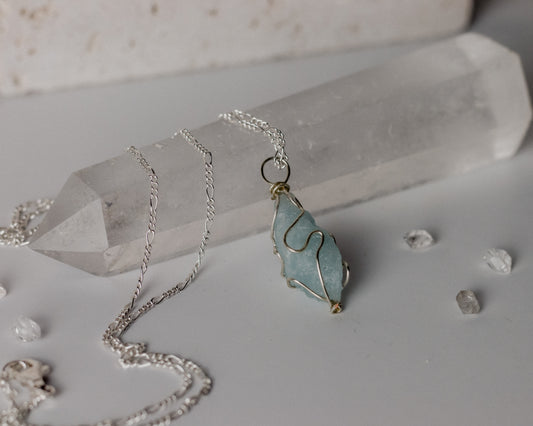 DEEP · Aquamarin Splitterkette mit Schiebeverschluss